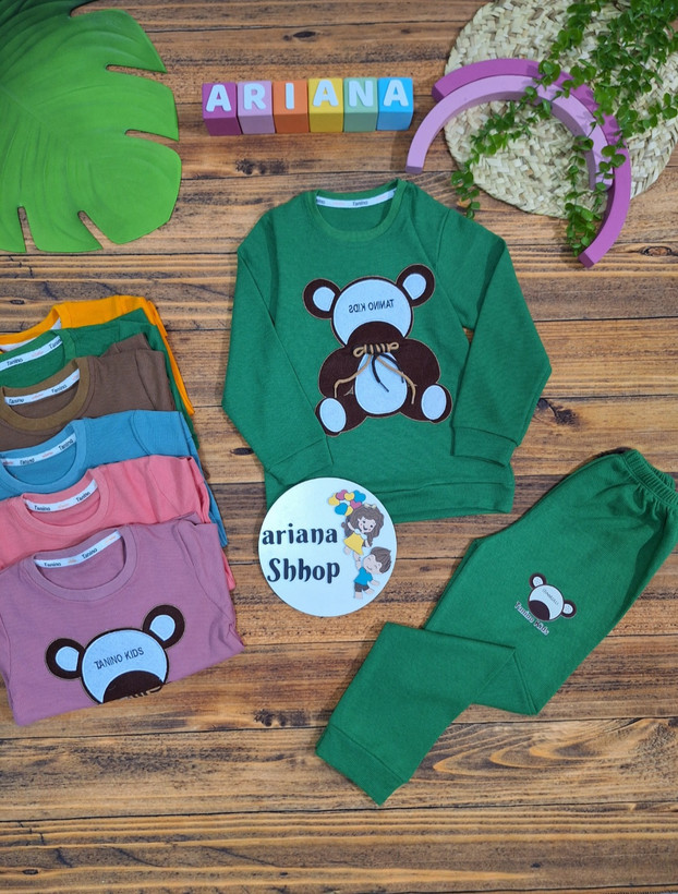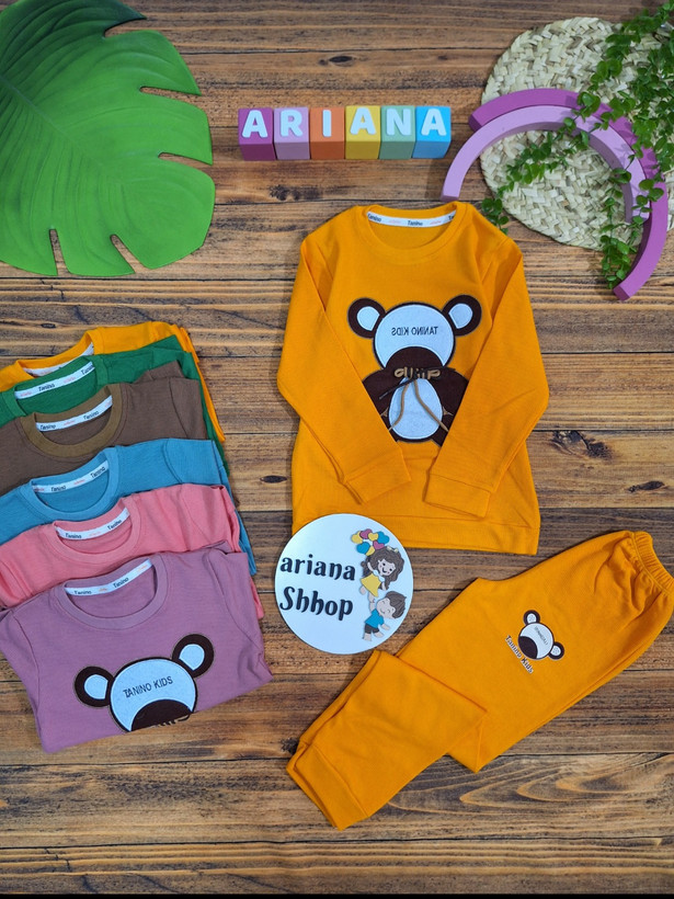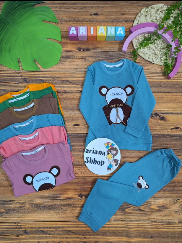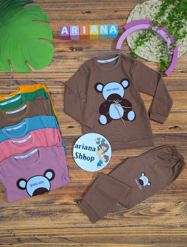 بلوز و شلوار طرح خرس جلو بندی کد ۷۲۵