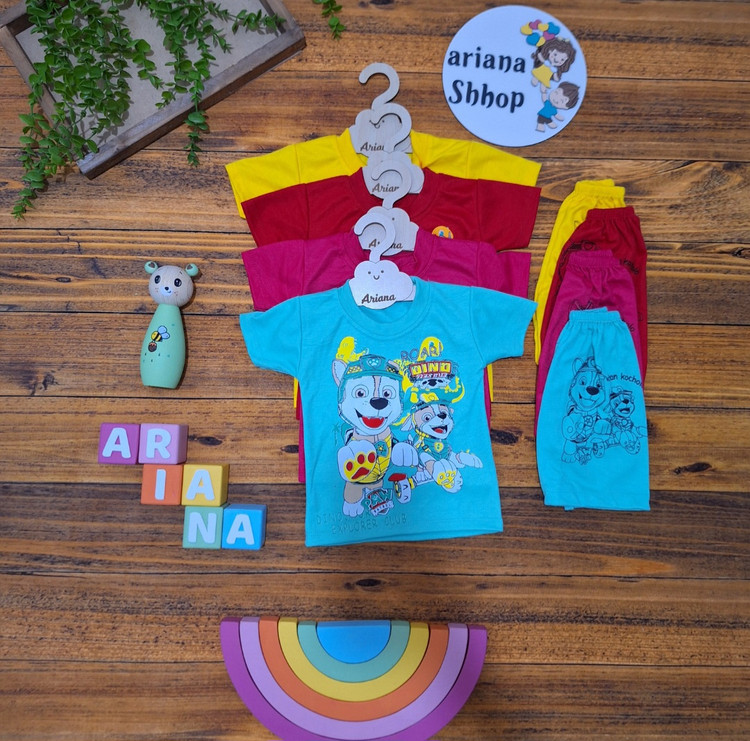 سایز ۵: قد تیشرت ۳۶ پهنا ۲۶ قد شلوارک ۲۶ فاق ۱۸